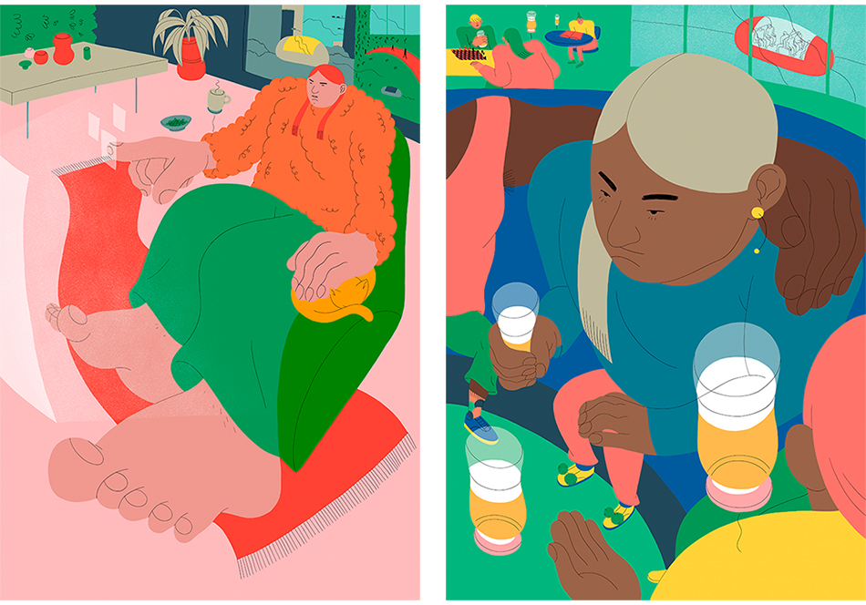 I started doing this kind of illustration in a project where I wanted to communicate advice to my younger sister (fourteen at the time). I wanted to communicate what it was like growing up as a woman, with three posters. When I did the illustrations I was very conscious of how I would depict the women in my illustrations. Because this project was meant for my sister I was aware not to make them sexualised and objectified in any way. And also free from narrow body ideals that we see so much in media and advertising. So that is how my style started. And that is how I try to think every time I make my illustrations now.