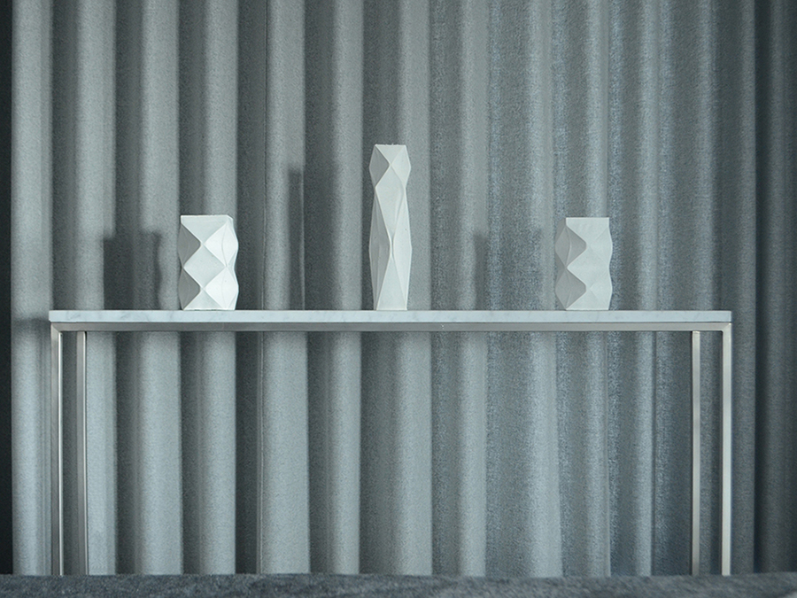 Dust London’s approach to design draws on their experiences in both artist and architecture studios, using both sculptural and decorative elements to create contemporary homeware. They were keen to step away from the computerised and the mechanistic, and instead, they allowed each form to evolve from handmade processes.