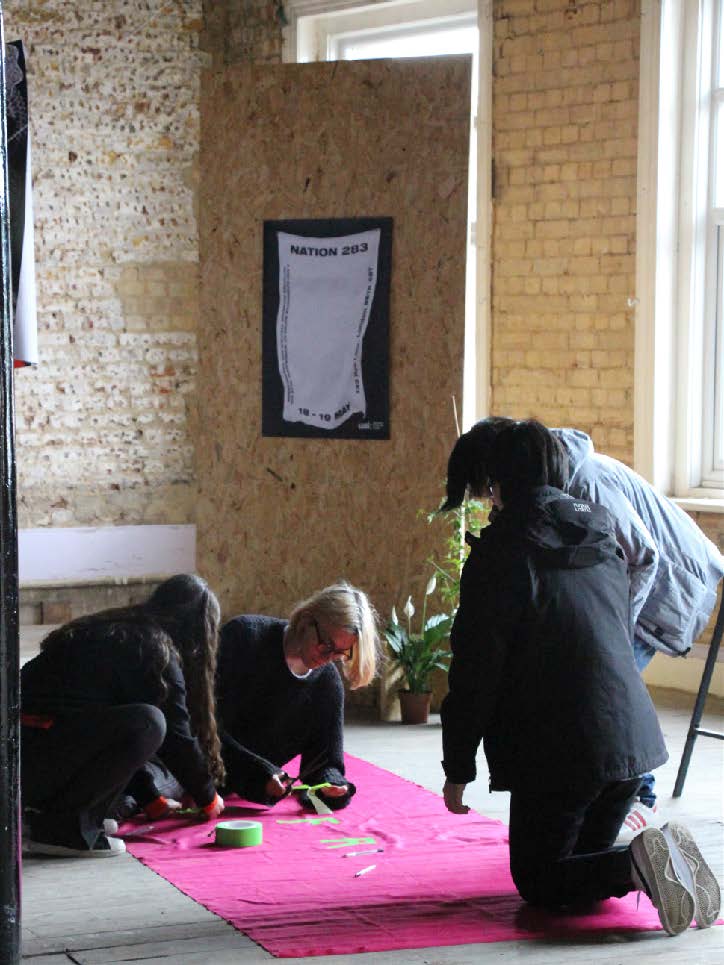 For their final year project, second year BA Graphic Design students presented Nation 283, an event focusing on the intersection of politics and graphic design. They invited the public to take part in workshops, talks and activities held in Peckham’s Bussey Building. Here, Senior Lecturer Robert Sollis and Graphic Design student Imogen Walker share images from the events of the weekend and an introduction to the ideas behind the project.