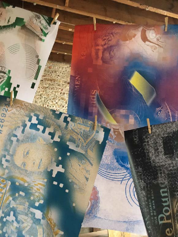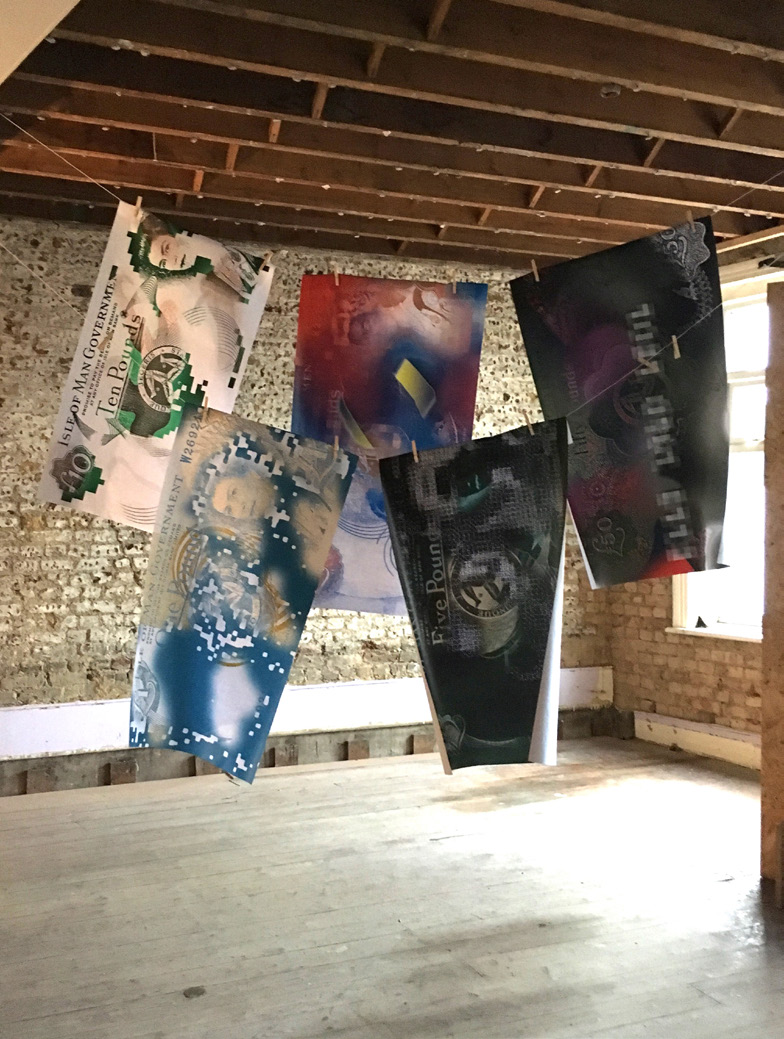 Prints depicting offshore money laundering in the Isle of Man by Imogen Walker