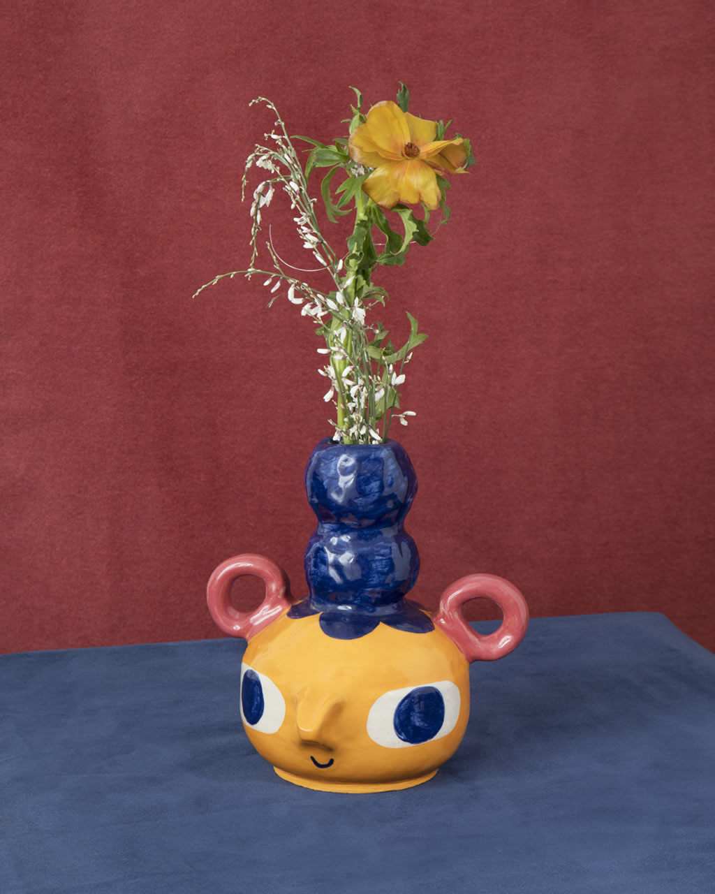 At the moment I mostly make ceramics and digital editorials. When it comes to my ceramics I do a mix of thrown and coiled work. I decorate with slips and underglazes picking bold colours that catch your attention. I like big blocky shapes in my ceramics and my drawings. So the two mediums inform each other strongly. I do a lot of my drawing in my sketchbooks with markers making shapes before I add details. I do the same in my digital work playing around with the lasso tool in Photoshop more than anything else really.