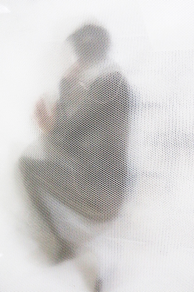 At the end of his second year Giovanni started an ambitious project , which needed a precise methodology to build a precise structure. He knew what he wanted to make but it was difficult to put together, so he did a lot of research and spoke with Camberwell technicians to complete this piece. The main part of the structure is made out of metal but Giovanni wanted to mix this with an organic element. The structure is for a performance piece, the top has a nylon material stretched across it and the frame is metal, which is bolted together to allow an easy construction and deconstruction. He needed the top canvas to be strong enough to support the weight of a body lying and moving on it. The idea is for the audience to walk into the metal structure and experience the performance from within the frame. The material he found to support the performer is usually used on boats, it’s strong and resistant, but elastic and flexible, making it soft and ideal for what he wanted to achieve. The challenge of the piece was to have the performance on top and allow the audience to take part in the experience. The performer needs to move very slowly but constantly, making a never ending process. In fact, the image that one see when entering into the structure and looking at the performer is like that of a sonogram. The image of the sonogram, Giovanni says, resembles one of his first experiments in the darkroom at Camberwell. This experiment consisted of creating 24 sonograms, dropping water, ink and wool on the photographic paper, making the process of the birth of a fetus. This is how his work is connected but developing along his creative path.