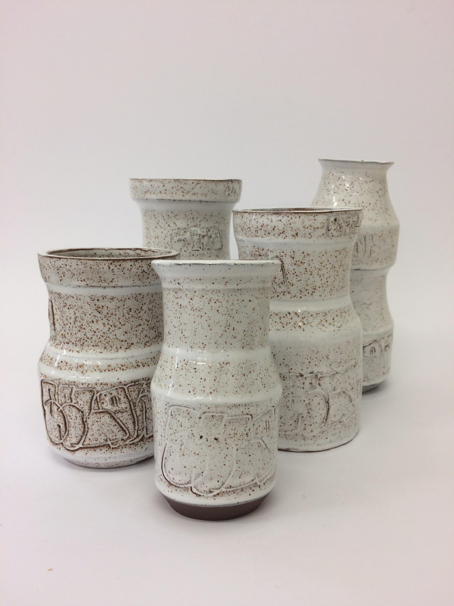 The work I made for the summer show was my interpretation of a true memorial/celebration of living in an urban environment as it’s not all quality public transport and high streets. A lot of my work is influenced by the different elements of the urban landscape; busy road junctions and eroded graffiti. I represented this in pots and vases which shared similar forms to old English salt glazed pottery, but I also took inspiration from late 18th century Chinese ceramics, using jade greens, and bronzes which were found on ritual wares. This was to match the ritual most inhabitants have in London of having the same trip through the same busy roundabouts, with what I imagine the same high stress levels.