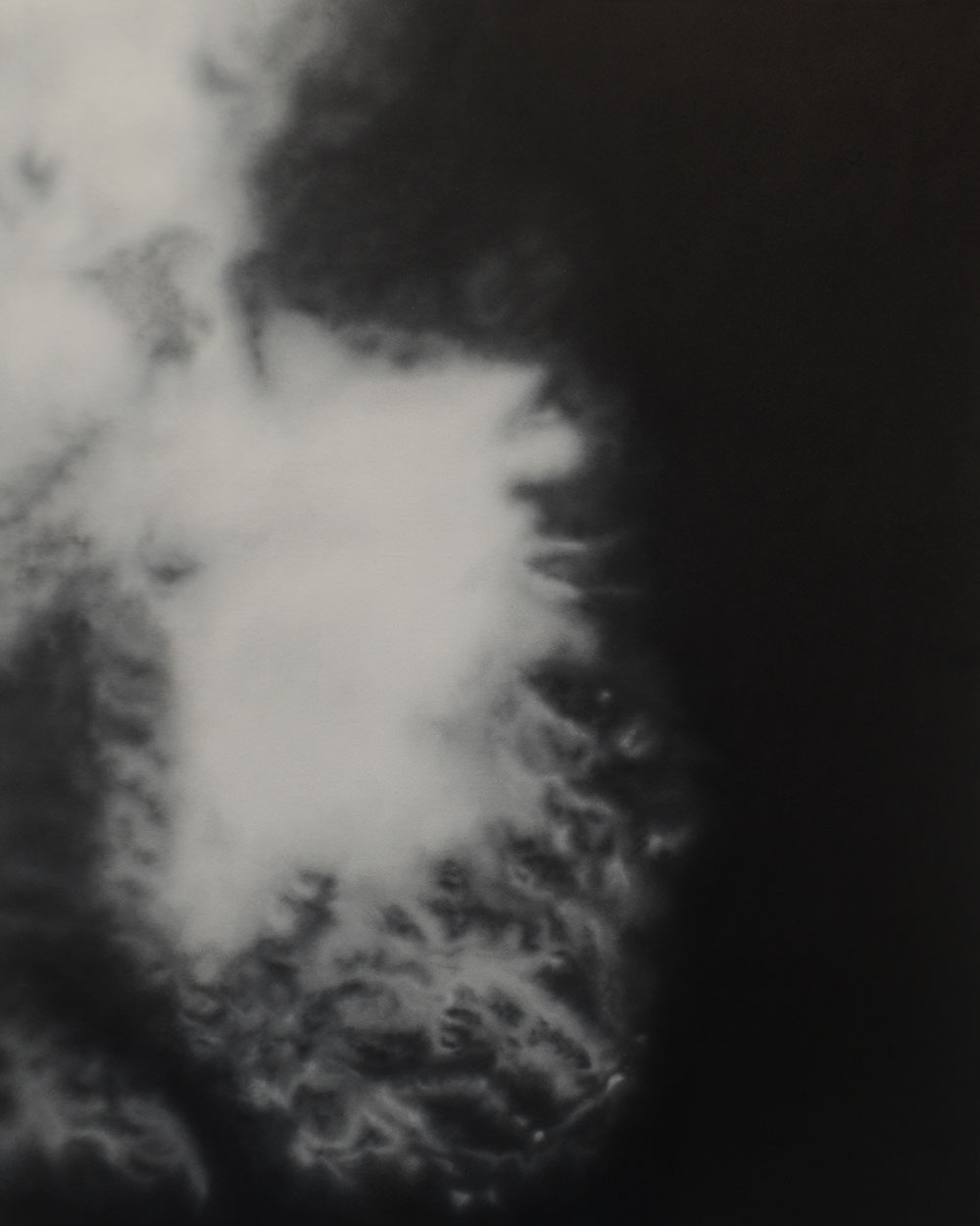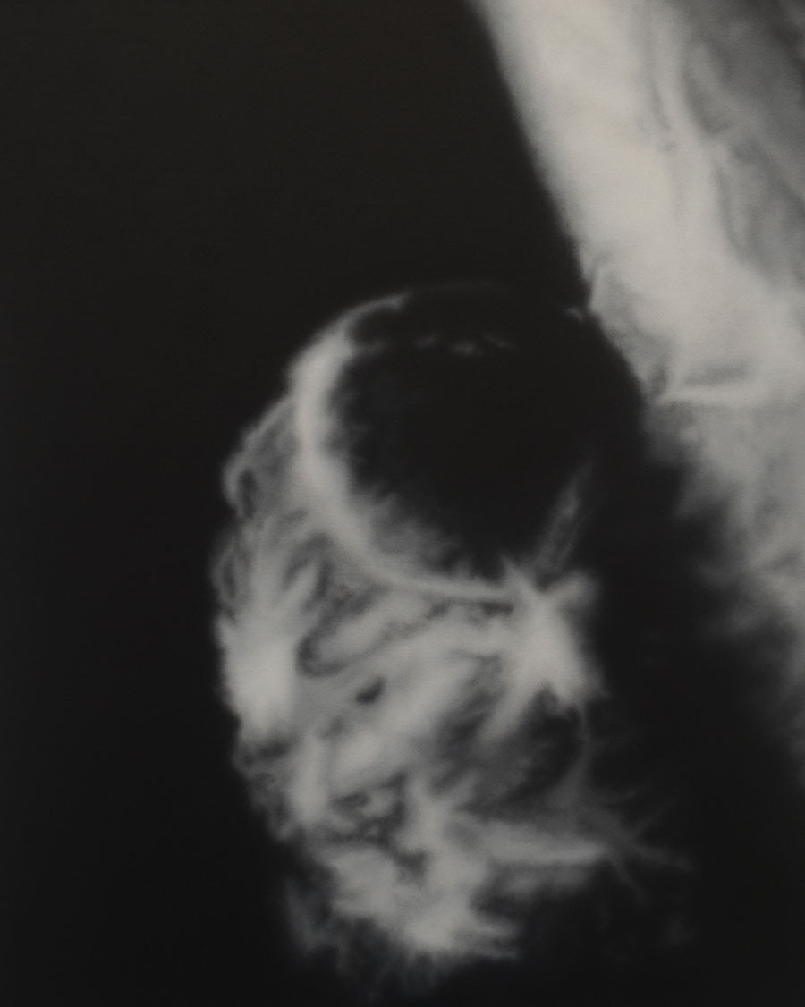 Thanks, I’m currently working on two series of oil paintings for my upcoming solo show Lovely in Her Bones. The title is taken from Theodore Roethke’s 1954 poem “I knew a Woman”. The black and white series is inspired by radiology scans. The aesthetic pleasure of the paintings conflict with the distressing subject matter. At first glance they look like soft and dreamy abstract images that evoke x-ray scans, but they are in fact images of different types of cancer and other diseases. When you gain that knowledge, the picture can never be looked at in the same way again.