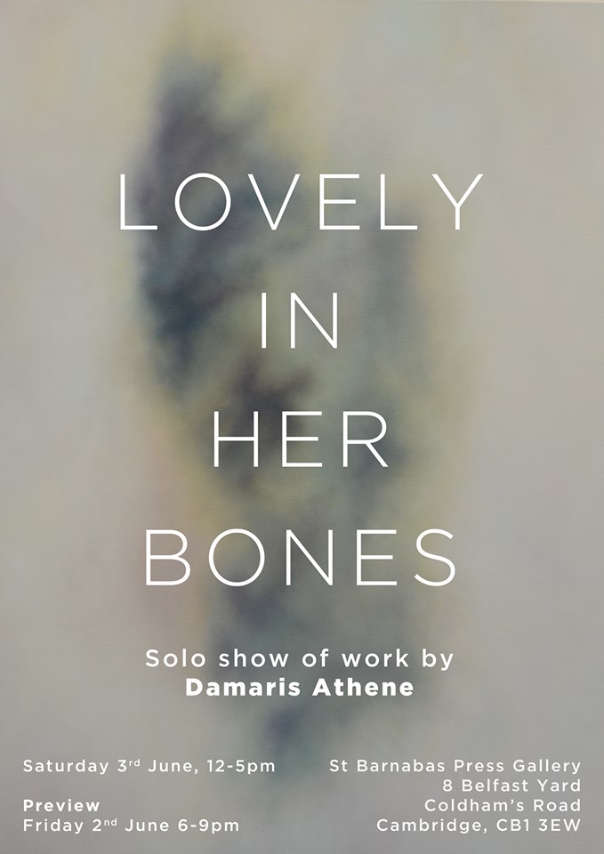Damaris solo exhibition Lovely in Her Bones is on the second and third of June at St Barnabas Press Gallery in Cambridge. The private view is open to the public from 18:00 to 21:00 on Friday second of June.
