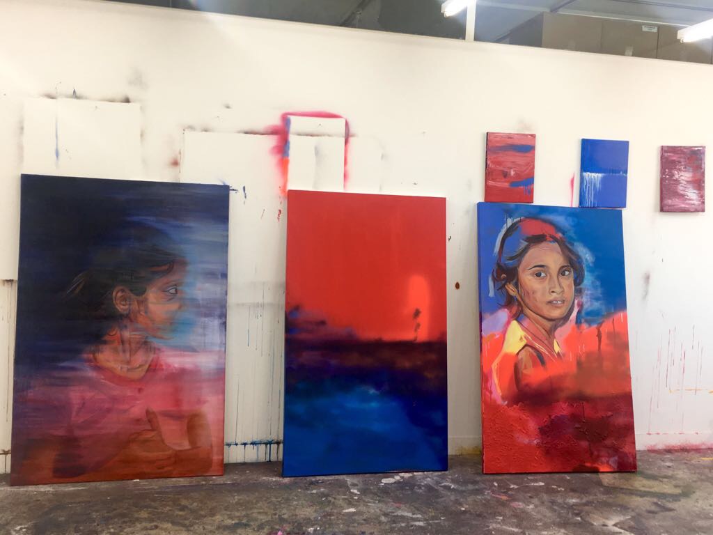 This residency gave me the opportunity to experiment with and to learn how to use new materials. I tried out new styles which I had never done before, it pushed me outside of my comfort zone. I was able to create paintings very quickly, enabling me to learn more about myself, and the colours and materials I want to use to create future paintings, especially for my final summer show. During the residency I was excited, nervous, learning so much, happy but also sad. I would like an opportunity like this again so that I can continue on with my research and further expand my practice.