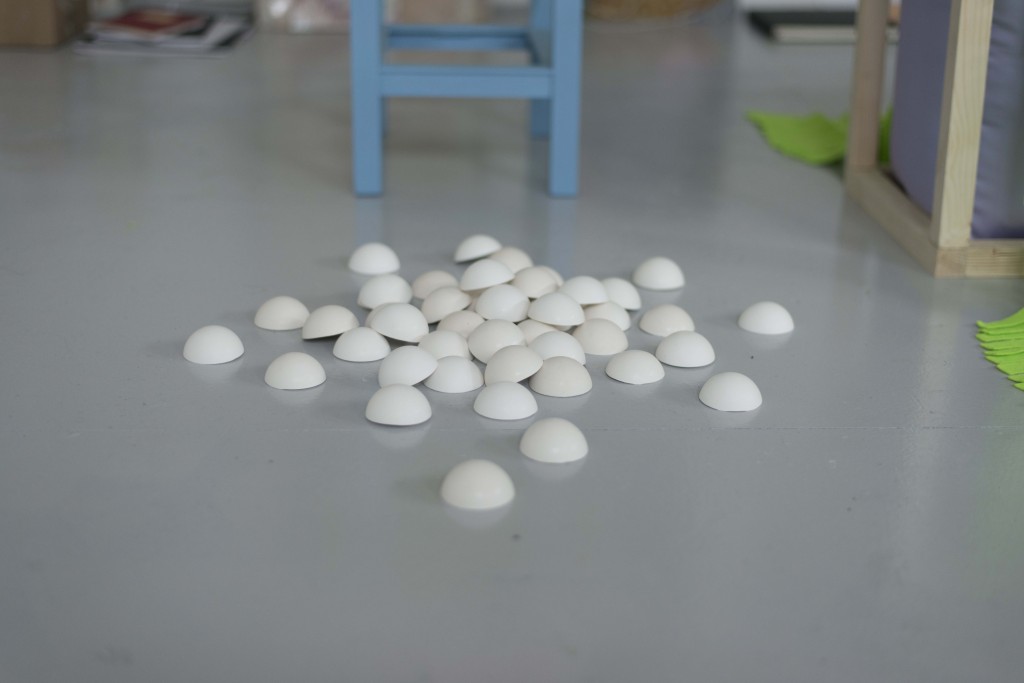The piece reflects on my investigative process, particularly my frustration at the level of censorship that inevitably occurs in the making of work and the difficulty in making a truly unconscious decision. I therefore chose an unimposing, pastel colour palette to dampen the seductive qualities of the objects within the installation, making it more ‘acceptable’ for a public viewing.