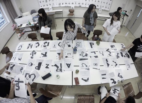 Cutting and making Japanese words. Jack and Josh introduced a group of students to modular typography and proceeded to design kits of parts from which they could design both English and Japanese typefaces.