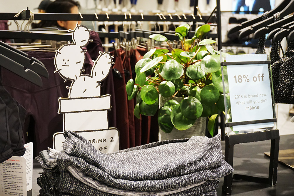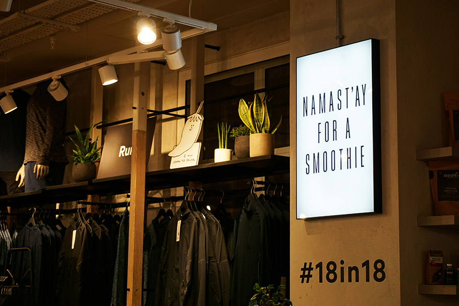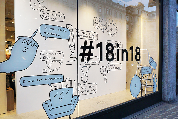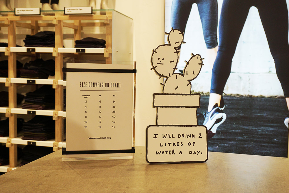 It was interesting! To be honest, I’ve never owned sportswear in my life so I felt a little bit like a fish out of water – but the people at Lululemon were so kind and I really loved the idea behind the campaign. They were keen to make a campaign that stayed away from tired and nasty New Year fitness goals – stuff like “I will lose weight” or “I will get a six pack” – and think about wellness as a whole. It was really different to how I imaginedThe client was Lululemon and the art direction came from creative agency Beach London. All the window displays and shop decor was made by Lucky Fox.
