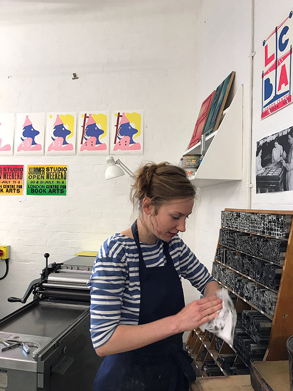 It makes me feel a little bit proud, but I also don’t know what it means. I know I have access to all the beautiful printing presses for three months, the foil blocking presses, the well-equipped bindery, a risograph printer and the satisfying guillotine. But in-residence, does that mean I am a resident of the LCBA space now? I still live in my old flat share room, I haven’t travelled to another city even to be accommodated by a studio, the way I always imagined residencies. If I am a resident, what are the LCBA studio members to me while I’m there? And are Simon and Ira, who set up LCBA five years ago and run it since, my landlords?