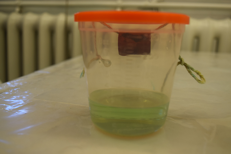 When arriving to the conservation lab on day one of the workshops we found Cheryl pouring vinegar into a small plastic bowl which contained a small piece of copper hanging from a string. As she sealed the bowl, Cheryl told us that a chemical reaction will begin the process of pigment production and that in about 24 hours we should see the colour coming through. We were immediately captured by this magical process and set up to ask students about their own experience. Below, two MA Conservation students tell us about their experience each day working with the pigments and Cheryl.