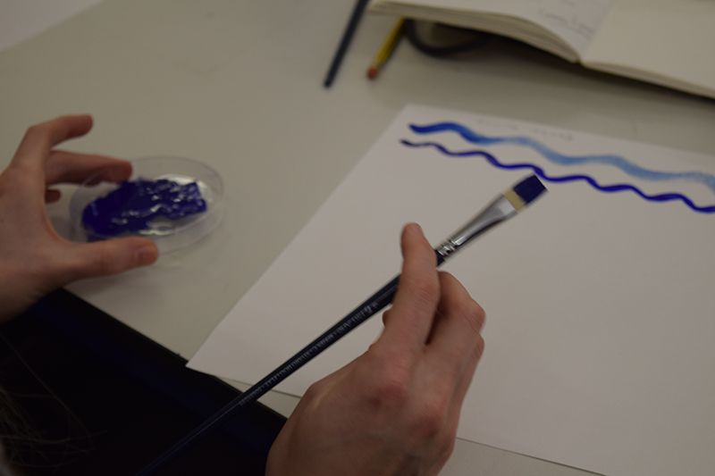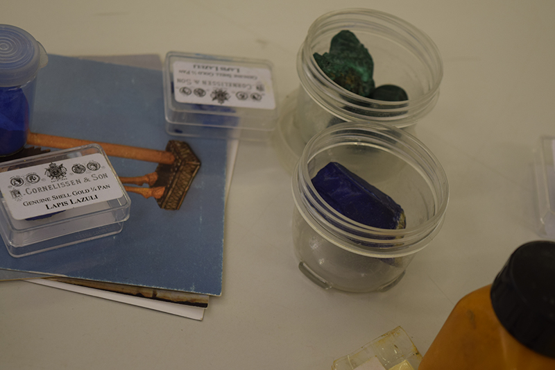 Our afternoon session allowed us to mix blue pigments with binders such as gum arabic and egg white, and mix it with other colours such as lead white. We also got to practice some leaf laying with gold and silver.”