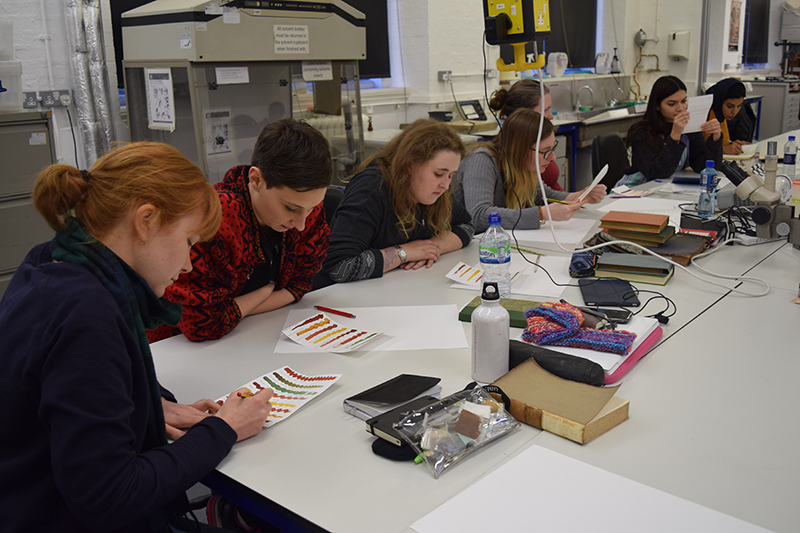 MA Conservation students at Camberwell had the opportunity to indulge in the fascinating world of medieval pigments through a series of workshops that included lectures in the morning and practical sessions in the afternoon. Second year Conservation students learnt about pigments and dyes used to paint Medieval manuscripts in European, Middle Eastern, and Asian traditions.