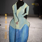 The second prize went to Asai Andrew Ta (Womenswear). His regal looking assemblage of fringed and ragged fabrics beneath a gorgeous green and scarlet wrap spelt A for attitude. The designs, stripped of heir razzmatazz, contained very wearable elements for either sex, an attribute that applied to many of the collections. Fiona O’Neill (Womenswear) is the recipient of the third prize. Her free form, reconstructed shapes are made in a stiff stand- away fabric with a painted surface. The abstract designs on the pieces are done with a nod to their purpose as dress.