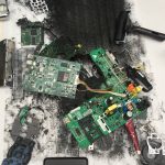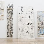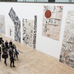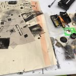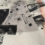 Taking inspiration from Rosie’s research into Paolozzi’s print-making investigations, Cross Hatching sees panels of printed designs line the 30m wall. The students repurposed discarded technology to produce a collection of mark-making tools. Combining these tools and contemporary techniques the students developed a series of printed fragments and wallpaper designs. Uniting traditional analogue and digital mark-making processes the epic scale multi-layered installation puts a modern spin on Paolozzi work.