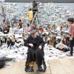 Taking place in The Street at Central Saint Martins, the project was launched in the morning by Gustav, initiating a performance by Fine Art students involving 4,000 newspapers kindly donated by the Guardian. The performance, live-streamed throughout the day, saw students continuously mounting articles on nature and the environment onto their surrounding environment, resulting in an epic installation.