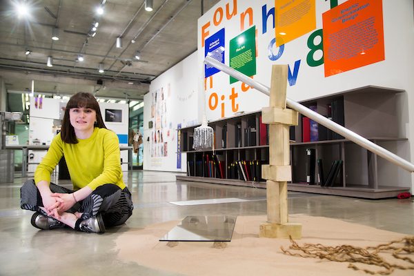 Hannah Billett with her work Temporality and Structure, Lethaby Gallery, 2018. Photo: David Poultney