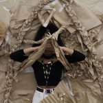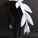 Here the students explored how the form, materiality and texture of an object can trigger different types of emotions and senses. Using paper as their main tool, the students worked in pairs to select three parts of the body to extend, focusing on key words protection, restriction and improvement. The different groups worked to create 3D forms that could then be applied to the body and worn. Wearing their paper extensions, the students then modelled their final pieces and prepared to have their work captured, ready to fill their portfolios.