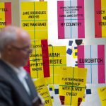 Staff, students, alumni and friends took the stage to speak their minds about creativity and the importance of cross-cultural collaboration and tolerance. Work on show included MA Acting students performing by excerpts from Carol Ann Duffy’s My Country, and Know No Borders, a typographic installation constructed from Visa applications by BA Graphic Communication Design students Daragh Anderson and Ollie Pearson. We were honoured that a performance of Eurobitch’s new song ‘Hey’ closed the proceedings.