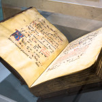 At the private view, I asked Phil to pick four exhibits that held a special interest for him. A 15th century music manuscript known by staff as `the one’ was his first choice. A magnificent monastic book of which he says, “it has got great initials, a lovely running hand ( a reference to the main text) and rubrics. So all elements are equally good. This is a real treasure.”