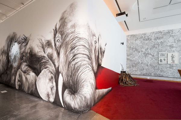 I drew from real women who answered a call to come to my studio and explore, through their bodies, various emotional states of protest. The animation goes through these states, and the audience is invited to acknowledge the presence of these women on the walls of the very white male-dominated space of the art gallery. The animated women are silent, but the centre of the space is fitted with hidden sensors, each linked to a soundtrack of women’s voices, so when you stand and acknowledge the women, you enable their voices to be heard. The voices include a gospel choir, prominent Kenyan feminist writers Wambui Mwangi and Ndinda Kioko reading their work, women answering provocations from Audre Lorde’s Transforming Silence into Language and Action, a conversation I had with my mother, and various others. When you are alone in the room, you only hear one track at a time as you traverse the space, but when the room is full, there is a crescendo of women’s voices.