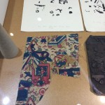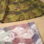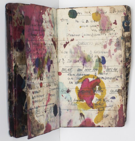 After the war smaller workshops like Footprints were quick on their feet to produce new designs. Using printing blocks made primarily from wood and lino, Clissold was able to swiftly test out new designs and experimented with more playful patterns and motifs, designs which Judy Willcocks suggests are mirrored in the bold textile design of the 1950s. Showcasing Clissold’s trial and error approach, Real Dirty Blue features splattered dye books and samples of her handcrafted textiles alongside design notes and printing blocks. The title of the exhibition was taken from the title of one of Clissold’s dye recipes, expressing this very real, hands on approach to textile design which is seen throughout the work in the show.