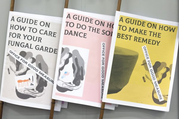 During the Degree Show, Bargman’s TV monitor will display her animated film How To Do The Soil Dance. Parodying dated public service films, it demonstrates step-by-step how to do the ‘soil dance’, an increasingly complex, meditative dance. Conceived as a ‘microbial measurement of time’, its two-minute running length is determined by the amount of time it takes to develop a microbial rich remedy. In the middle ages, people would often count the number of stirs it took to mix their home-brewed remedies, chanting words and songs to monitor the time. Bargman imagines a speculative world, in which a large portion of the community will be involved in citizen science projects, developing their own drugs and medical potions in order to negate AMR. Acting as guardian and instructor, the OGM is responsible for ensuring safe, efficient and effective procedures. Alongside printed guides and leaflets, Bargman’s instructional dance video is a pseudo guide, a feasible but nonsensical marketing strategy which taps into the rituals of the past.