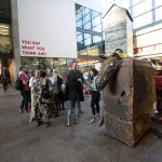 After months of our interactive design identity visualising the anticipation for Show One: Art, the work was finally unveiled to audiences for the first time. With a series of performances, including the procession of a cardboard Trojan Horse; an ‘alternative’, fictional Degree Show with mascots and merchandise and flintknapping under a 20 foot tree, the building was full of activity. Here are a few photographs which showcase the energy of the evening.
