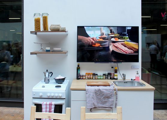 BA Fine Art student Thora Chwae has installed a fully-functioning kitchenette outside the canteen, complete with sink, oven, hob and kitchen table and chairs. Chwae’s transplanted room is influenced by the Slow Food movement and Neo-gastronomy. The Slow Food movement encourages a concept of food defined by the principles of goodness, cleanliness and fairness. In extension, Neo-gastronomy is a multidisciplinary approach which forges the connections between plate, planet, people and culture. Chwae’s references to the movement signify food as a vehicle for narratives – to tell stories and revalue them, presenting, as she terms it, “one’s life on a plate”. For Chwae, food is a translation of “human history and our ways of living”, it condenses our values, creativity and knowledge. By recreating the domestic environment of the kitchen, a place for cooking, eating and sharing, she attempts to elicit a new understanding of ourselves through the frame of food.