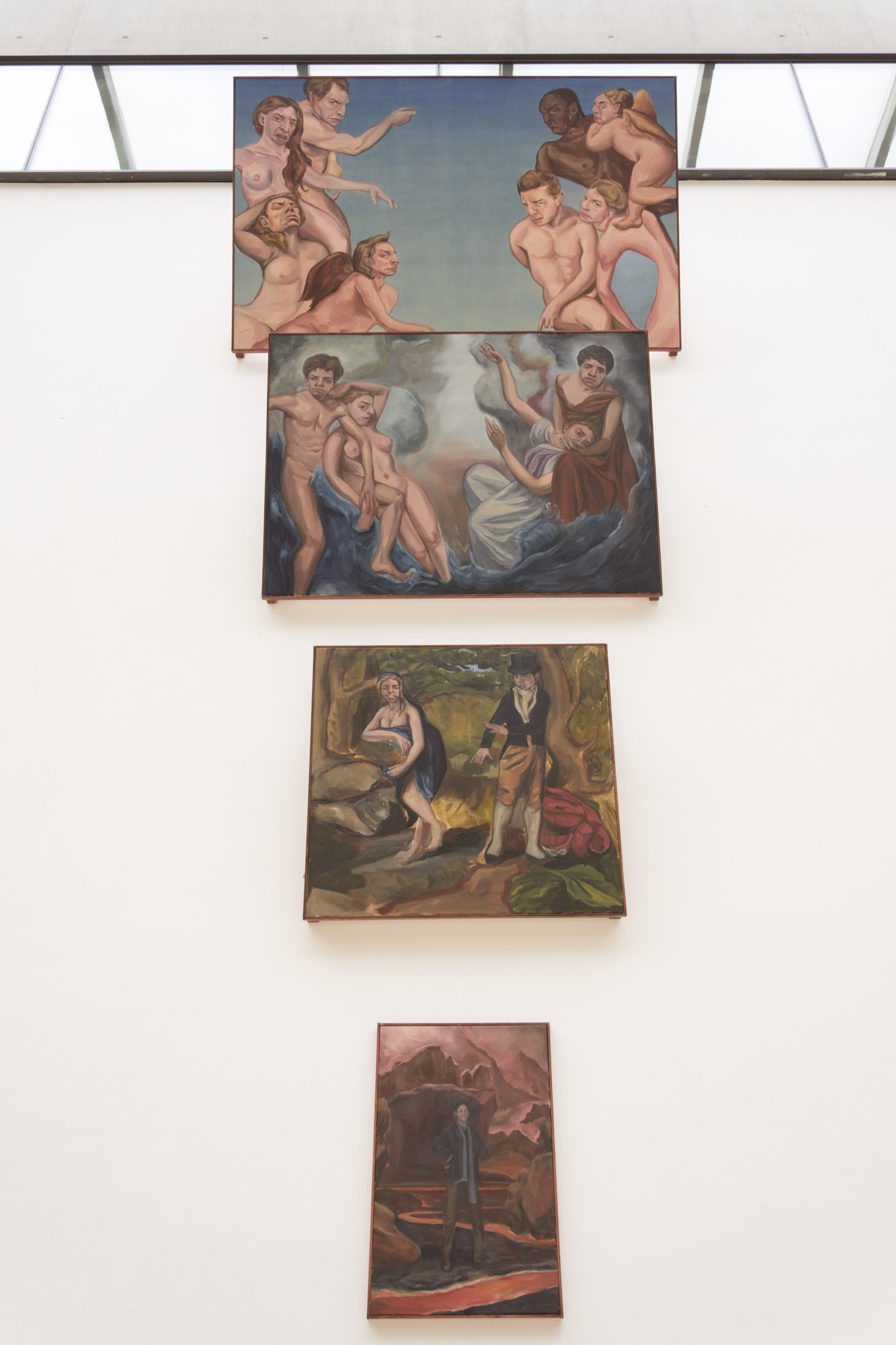 Each composition is essentially a collage of figures and details from other paintings, from Boucher and Tiepolo to John Martin. His interest in historic work came to the fore during a year at the Warburg Institute embedded in art history research. Asking Ford what he gained during that time among the archives, he replies, “a general acceptance that I can dive deep into this area. You can become your own Warburgian German art historian.” Returning to his practice, he embraced not only an historically analytical approach but also the most canonical of disciplines: painting.