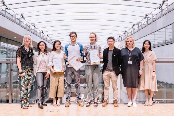 The Mills Prize winners with Anne Smith and Carole Collet from Central Saint Martins and Carine Cheu, Alexander Chan and Amy Tsang from The Mills. Photo: Vic Phillips