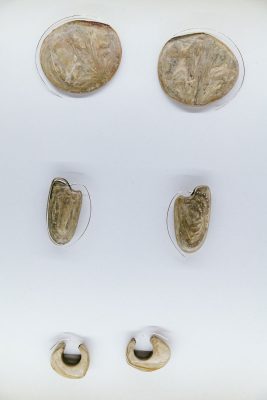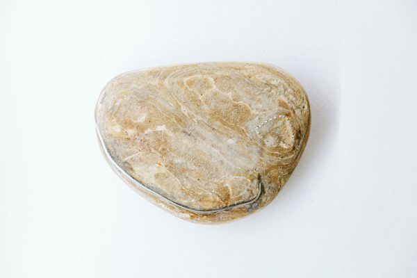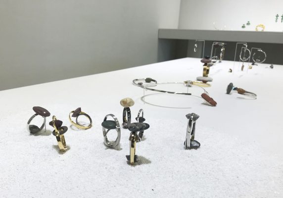 Kidd’s pieces are a symbol of the control of nature over our actions and decisions; he relies on the unpredictability of natural objects and processes to imprint and alter his own creations. Similarly, MA Design: Jewellery student Neung Wi Kim’s final collection Samrimryok incorporates pebbles and stones collected from beaches she has visited – relying on their unique character to create a jewellery collection. The project title translates as an “immersion of self within nature”. Using the meditative symbolism of the beach environment, Neung Wi’s collection is an attempt to translate past experiences of nature into object forms. Neung Wi exploits sensations of touch and the qualities of unique hand-cut stones to create wearable icons, and reminders, of wellbeing and restfulness.