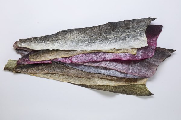 Also tackling this dichotomy from a material angle is Andrea Liu from BA Textile Design. Liu’s textiles are produced by tanning salmon skin – an experimental process which is sustainable and chemical free. While this is a project driven by turning waste into a material of value, Liu is also interested in narrative-based textiles. Inspired by ganseys – distinctive woollen jumpers worn by fishermen – her designs focus on the importance of preservation, using textiles to protect knowledge and memories on the verge of being forgotten. Here, human action is utilised in order to re-image and re-value a natural material.