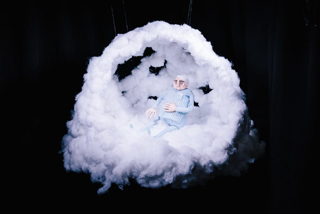 Visitors to Show Two could see an old man, dressed in striped pyjamas, sitting in a cloud. This is one of the models used during the making of film Stroke by Jiani Zhao and Emanuele Romano, both graduating from MA Character Animation. The film, a combination of stop-frame and hand-drawn animation, tells the story of a man having a stroke.