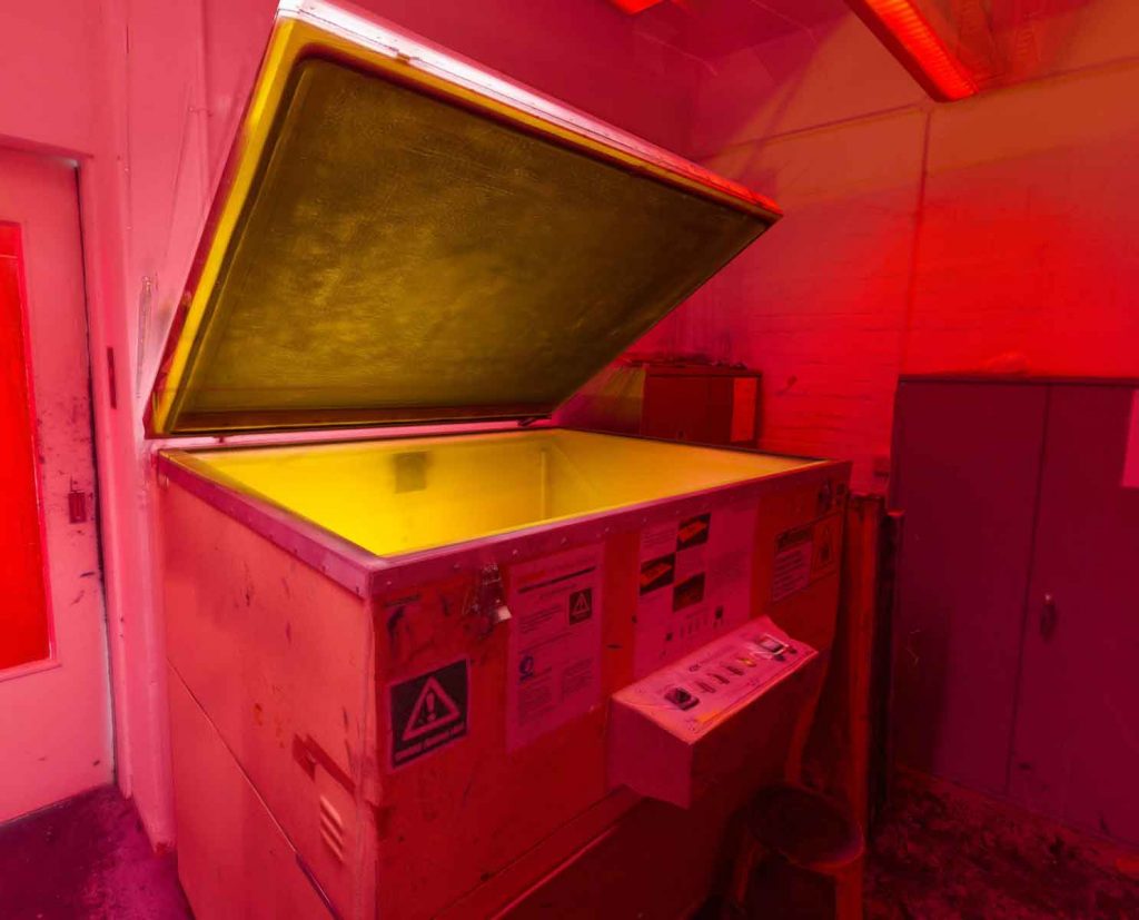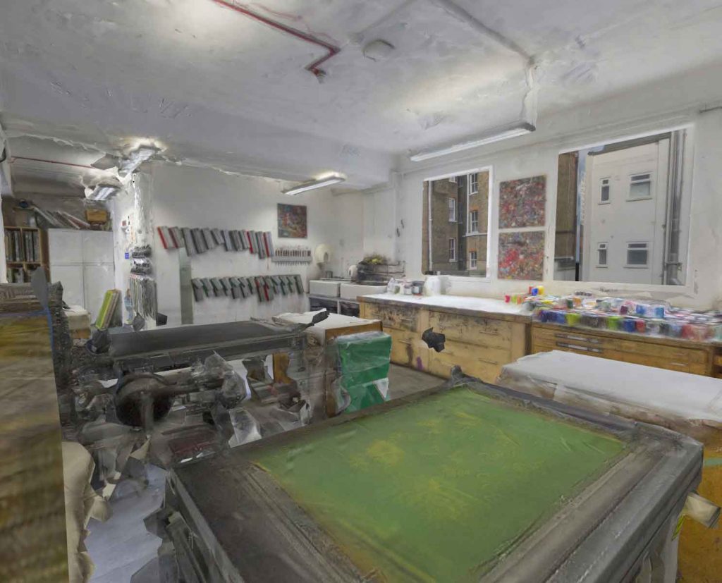 Returning to Central Saint Martins, Biddulph realised that the printing workshop could work in the same way, a preservation of a space about to be lost. Capturing not only the space but also the sounds of people and machines at work, he built up the environment. He is working on two versions, one which simply presents the space, and another that is embellished with text giving context and insight. The re-presentation of spaces past has plenty of applications, and while Biddulph sees its potential for objective archiving of historic places, he’s equally interested in the personal and subjective possibilities.