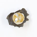The Student Medal Project started at Central Saint Martins in 1993 and consists of a second year competition to create contemporary art medals. Most are cast in bronze, but students have also used other materials. Angela Coward’s ‘I can resist everything except temptation’, for example, is cast both in bronze but reproduced in chocolate while Laura Bamber’s ‘Personal Medal’ incorporates eggshell, resin and gold paint.