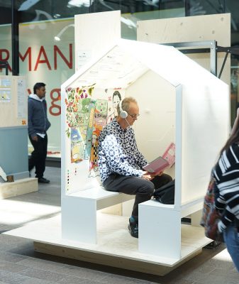 MA Narrative Environments student Cruz María Vallespir’s final project Mi Casa raises awareness of Latin American culture in London, focusing on individual stories of arrival and survival. Through a series of community workshops, Vallespir collected a range of narratives exploring Latin American migrants’ ideas of home and the ways in which personal and cultural identities can be defined through domestic spaces. Participants were invited to draw and share memories both of their countries of origin and their new homes in the UK. Later, these stories were developed into embroideries and, illuminated by internal lighting, formed the basis Vallespir’s “story-house” structure – which could be seen, and inhabited, at Degree Show Two: Design.