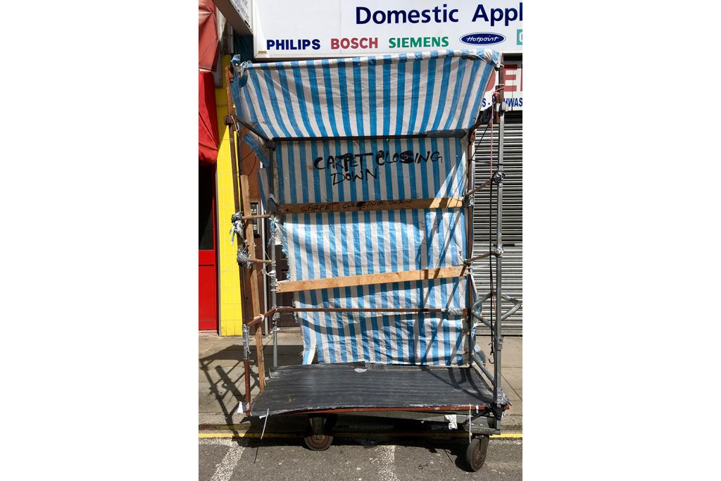 I have specified Chapel Street Market, as I sometimes pass through there, but other street markets will do too. Markets like this inspire my practice because of the diversity, energy and resourcefulness that emerges between communities and the assembled materials. Tarpaulins play a significant role in the construction of a market. I often incorporate tarpaulins in my work, because while they hold many functions and connotations, they are a unifying social fabric, suggesting an underlying life force. I am fascinated by how such a simple and unassuming material can quickly transform places into sites of restriction, prohibition, freedom and escape at any one time.