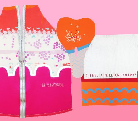 Cycling and other physical outdoor activities can foster huge benefits for our physical and mental health. Cycling also encourages a sense of adventure and exploration of space – it is a great tool for well-being. Lack of confidence and fear can hinder this. I asked female cyclists the question: “How does cycling make you feel?” The resulting answers included keywords such as: strong, liberated and in control. I included the phrase “I feel a million dollars” in this textile sample in order to remind women why they cycle and how it can make them feel, eradicating fear and feelings of intimidation. The incorporation of these quotes from female cyclists is an attempt to increase confidence and provide inspiration before a ride.