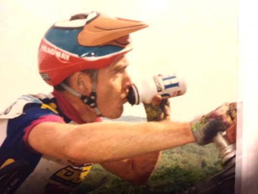 Family photograph of McGuire’s uncle Nick Craig at the end of a race