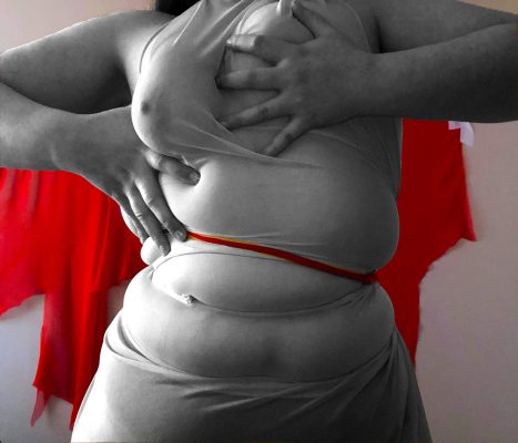 For me, this project is an act of therapy and an opportunity for self-improvement. Fashion helped me be confident about myself; the way I dressed became my way of communicating that I was comfortable with how I looked. However, when taking the clothes off the confidence would go with it, and I would become this self-conscious little girl. Tired of feeling trapped in my own insecurities I decided to take control, making my body and my relationship with it the subject of my study. I created a series of pictures in which I explore what my body can do by interacting with ropes and different fabrics. With these images, I tried to find the beauty where I saw ugly before. I casted my body and created silicone garments making my body “wearable” and “fashionable” – so that when you take off clothes you can replace them with “your body.”