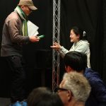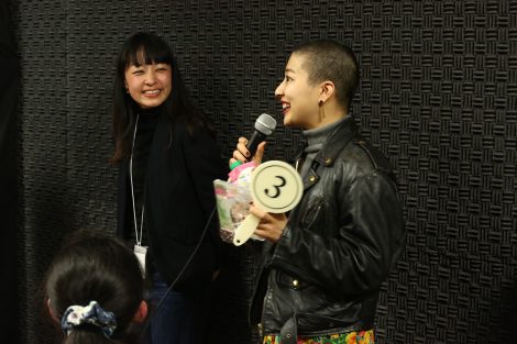 As part of Mariko Kakinaga’s, another participating artist in YAMI-ICHI Tokyo, presentation she told the bidders that she wanted to learn to sing. In exchange for her artwork, Maya Makino, a young singer who had come along to the auction, offered free coaching for singing and an invitation to her debut performance in Tokyo. Mariko decided to take this offer in exchange of her work and in April she went along to Maya’s first performance in Tokyo.