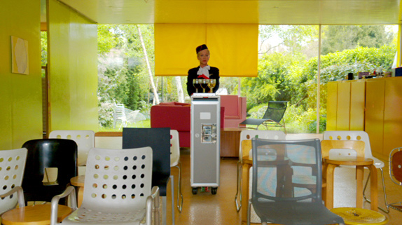 Noam Toran’s Desire Management is a film comprising five sequences in which objects are used as vehicles for dissident behaviour. In the film, the domestic space is defined as the last private frontier, a place where bespoke appliances provide unorthodox experiences for alienated people: An airline hostess with a unique relationship to turbulence, the owner of a mysterious box which men ritually visit to look inside, an elderly man who enjoys being vacuumed, a couple who engage in baseball driven fantasies, a man who is forced by his partner to cry into a strange device. The film is based on real testimonials and news reports, and the bespoke objects are an attempt to reveal our inherent need for expression and identity in the face of conformity.