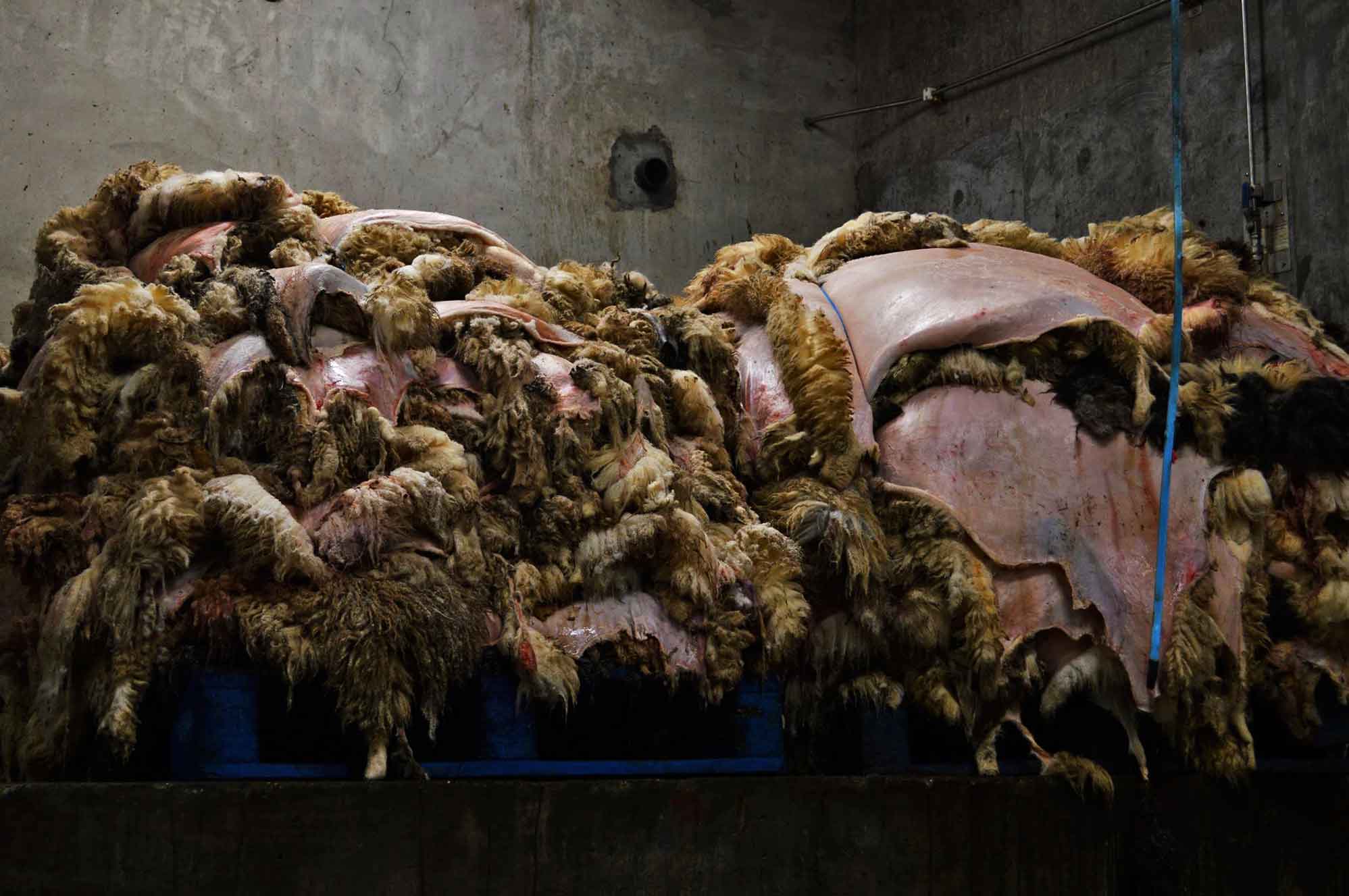 I was lead into the back room of an abattoir by a Manx farmer to photograph animal skins while they lay in great piles on concrete slabs. Blood pooled around my feet as I watched them absorb mounds of granite salt. They were being preserved.