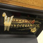 The titular Workshop Wunderkammer signage and graphics have been designed and produced especially by Letterpress Specialist Helen Ingham. Ingham used the traditional technique of reverse glass gilding with 23.5 carat gold alongside digital design technologies, and the sign itself has been framed by Printmaking Specialist Technician Paul Dewis.