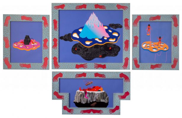 The display lifts the curtain on a thriving culture of collaboration within and across departments. Six staff members of the Drama and Performance technical team have produced a large-scale performative light installation, and long-term collaborators Ingham and Specialist Technician in Metalwork Ricky Brawn are exhibiting a series of records which encompass the breadth of their practice: writing, playing and recording as well as the design and production of the record sleeves. While Lara Smithson’s series of drawings My feet lead the way and glow red, which themselves incorporate multiple 2D digital technologies, have been framed in unique wax and wood frames made in the 3D Large workshop.