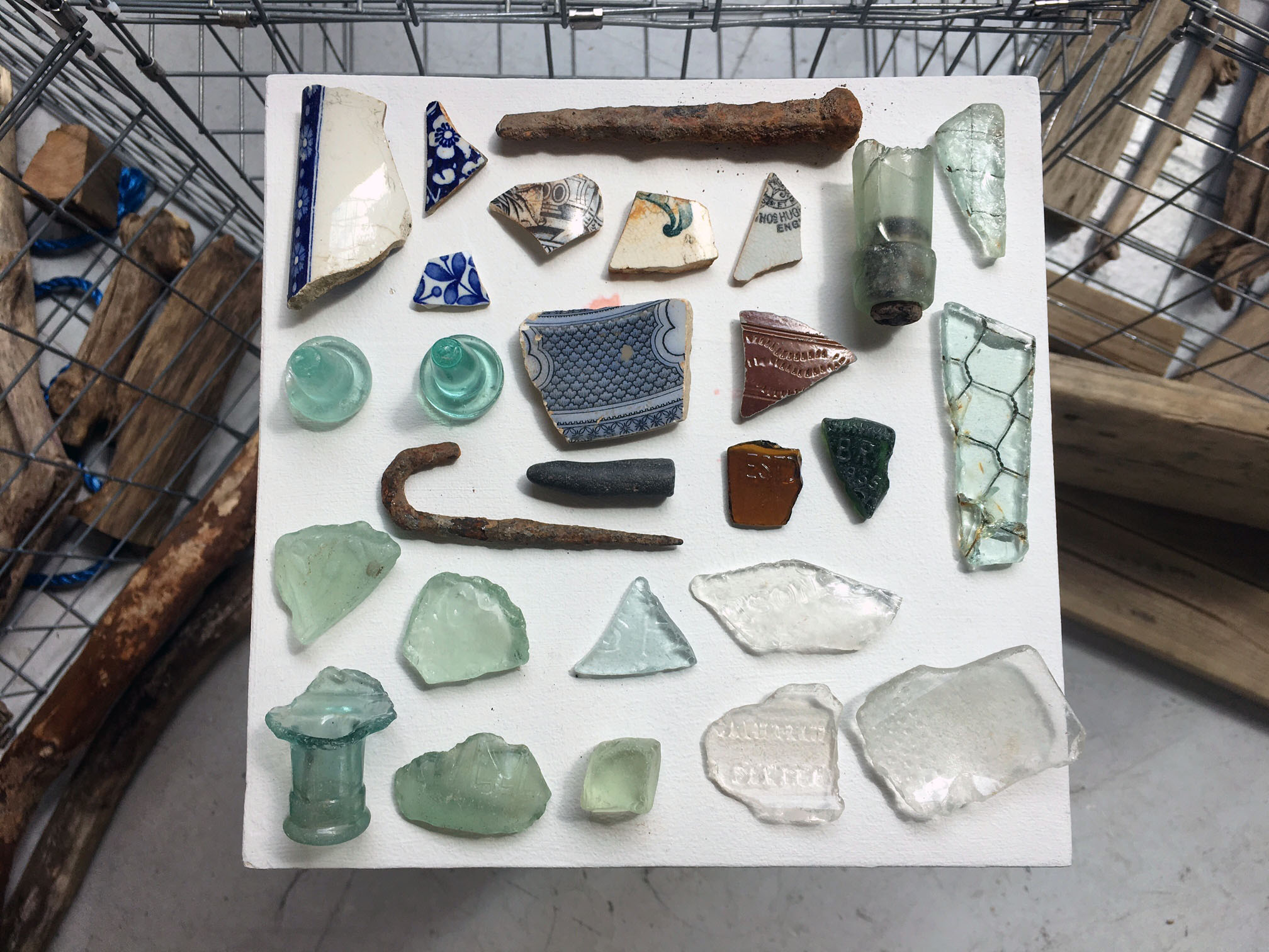 Collecting materials for the installation – daily visits to the shoreline at both high tide and low tide and the logistics of getting the materials back to the studio space!