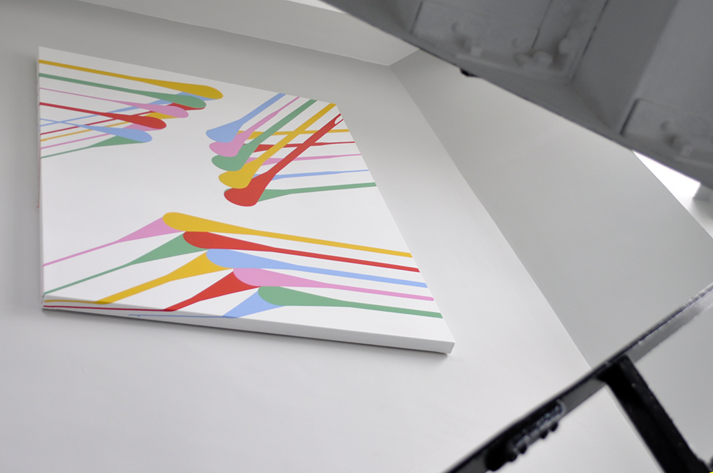 I’m developing my spinning canvas technique to create larger and much more challenging, mathematical paintings. I am also experimenting with different paints as they all have different properties which can really change my painting process.