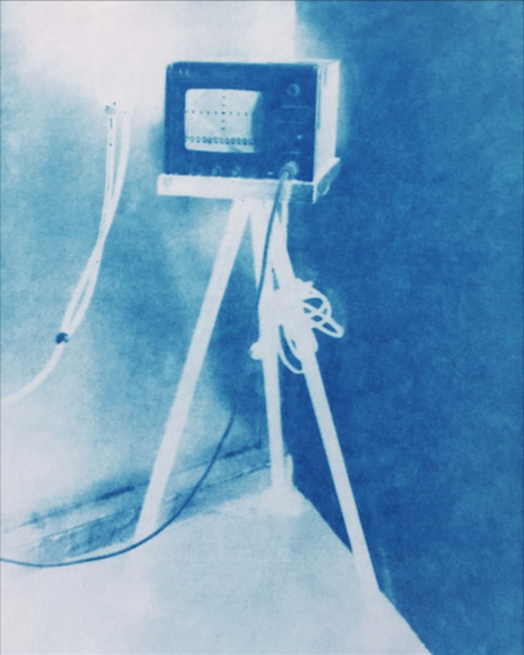 David said: “I kept returning to that thought and watched the documentary a few times before it occurred to me that during the pre-digital era most documentary film makers brought a camera to take some stills. Paul allowed me to use his negatives so I started to look through them, make contact prints and revisited the idea of making a series of cyanotypes that would reflect the architecture, framework and system of persecution.”