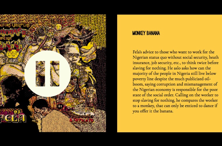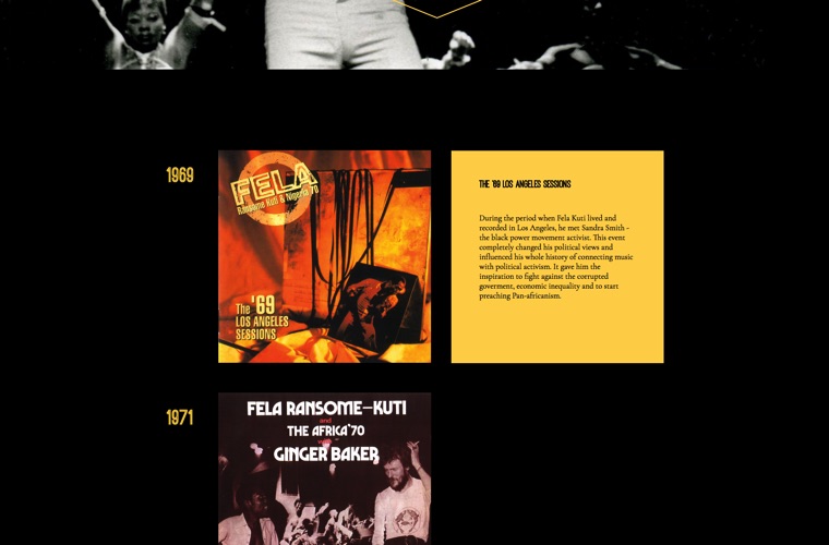This interactive timeline by Mateusz Gryta tells the story of Afrobeat pioneer Fela Kuti through his album covers.